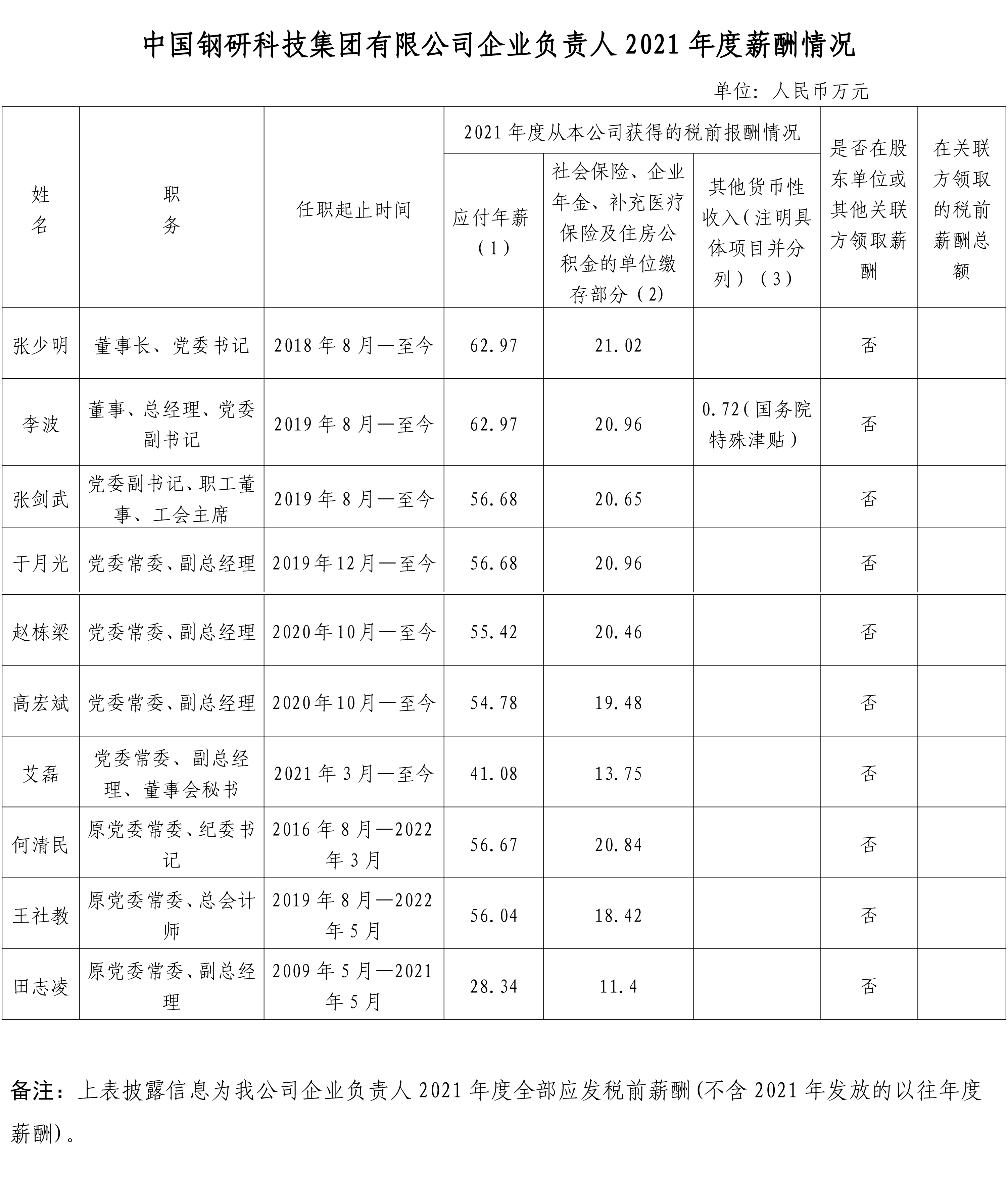 企业负责人 2021 年度薪酬情况